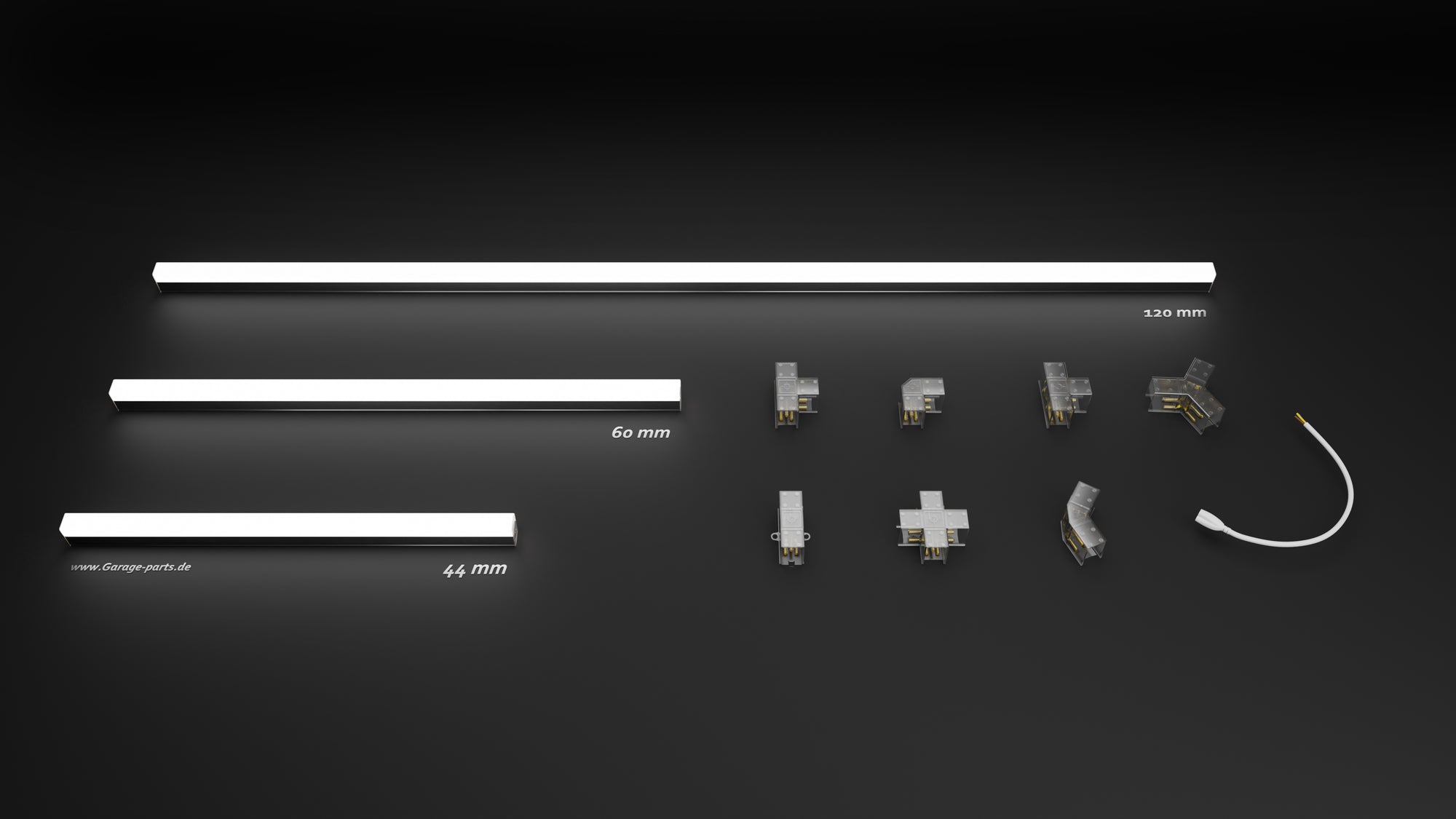 Notre système d'éclairage LED est équipé d'un simple « système de clic » et peut être facilement monté au plafond. Il se compose de barres lumineuses individuelles qui peuvent être facilement assemblées.