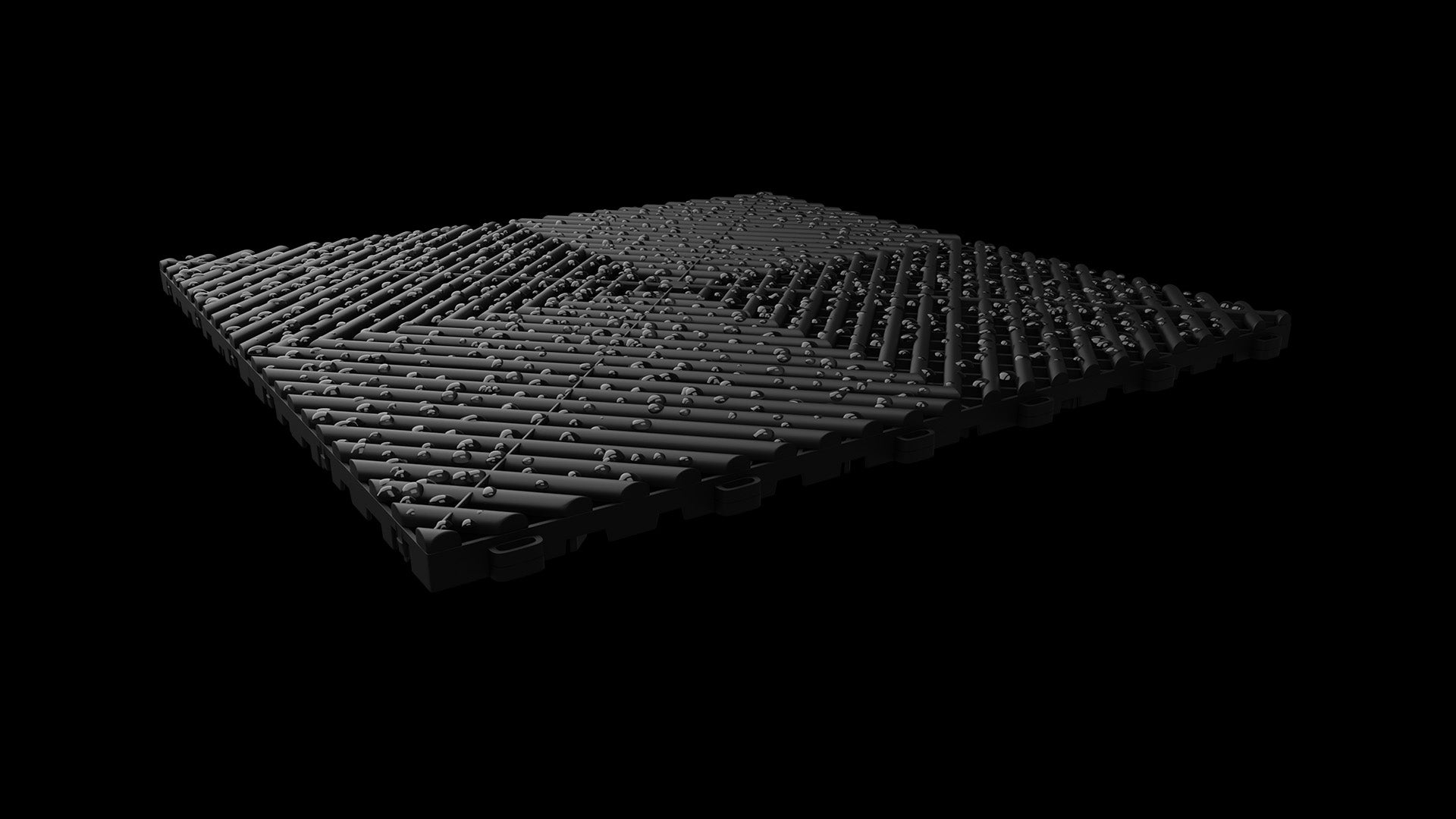 Das Modell Pace #1 zeichnet sich durch einen besonderen Vorteil aus: Wasser, das beispielsweise von einem Fahrzeug tropft, trocknet nicht auf den Fliesenoberflächen, sondern wird durch die Fliesen geleitet und kann darunter trocknen. Dies ermöglicht eine ausgezeichnete Luftzirkulation.